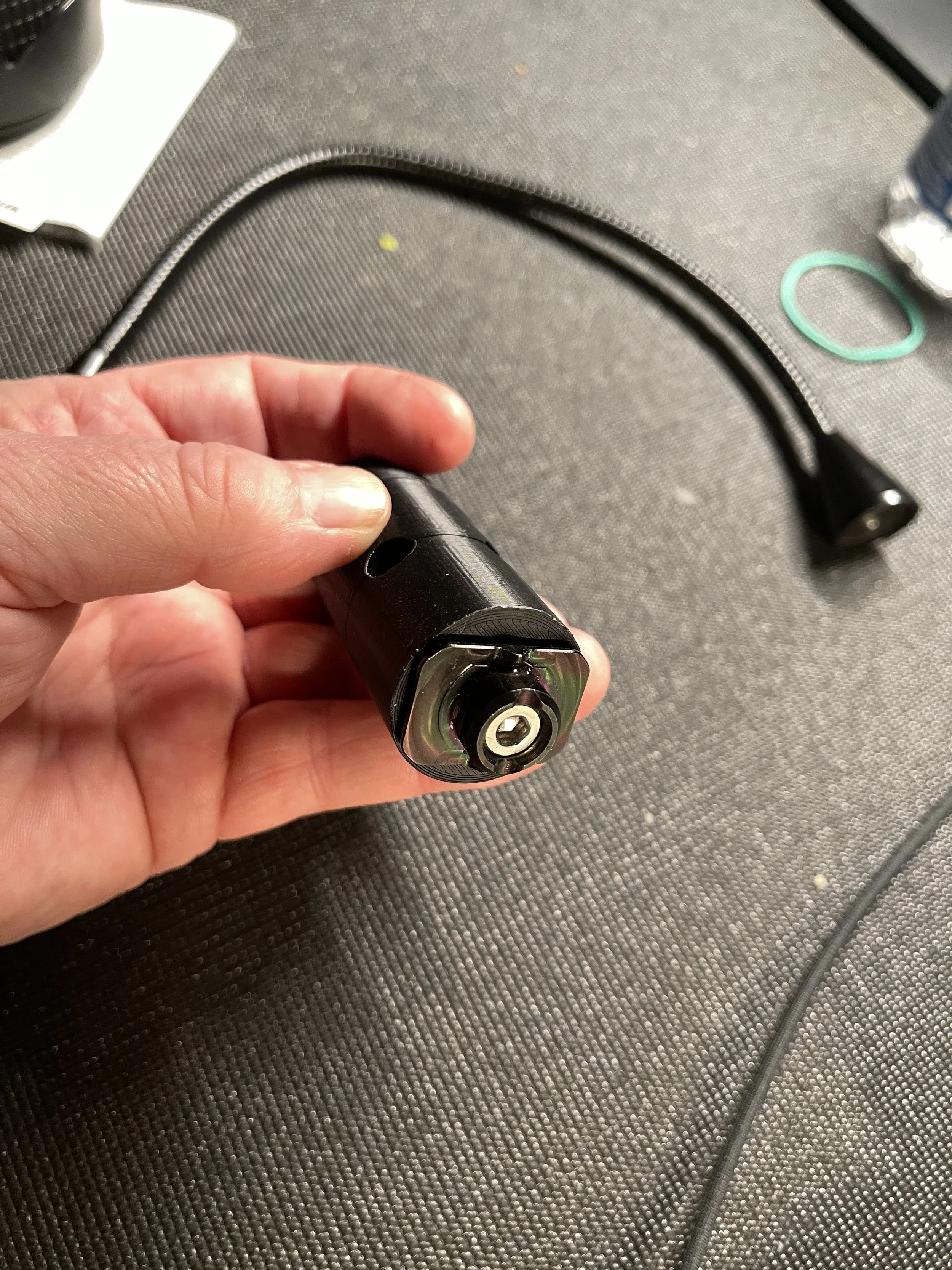 Opening and closing the arm-holder body is accomplished by means of a hidden 3mm bolt that can only be accessed by placing an Allen key through the brass insert in the base. This hides the structural components while holding them captive and preventing misalignment of the parts when changing arms. The lower arm set are almost 9” long and allow for a larger external diffuser sheet to be held further out from the specimen while allowing the user to modify its exact position with ease. The upper arms are only 4” long, keeping the inner diffusion layer much closer to the subject and guaranteeing excellent separation of the diffusers (velum or mylar).